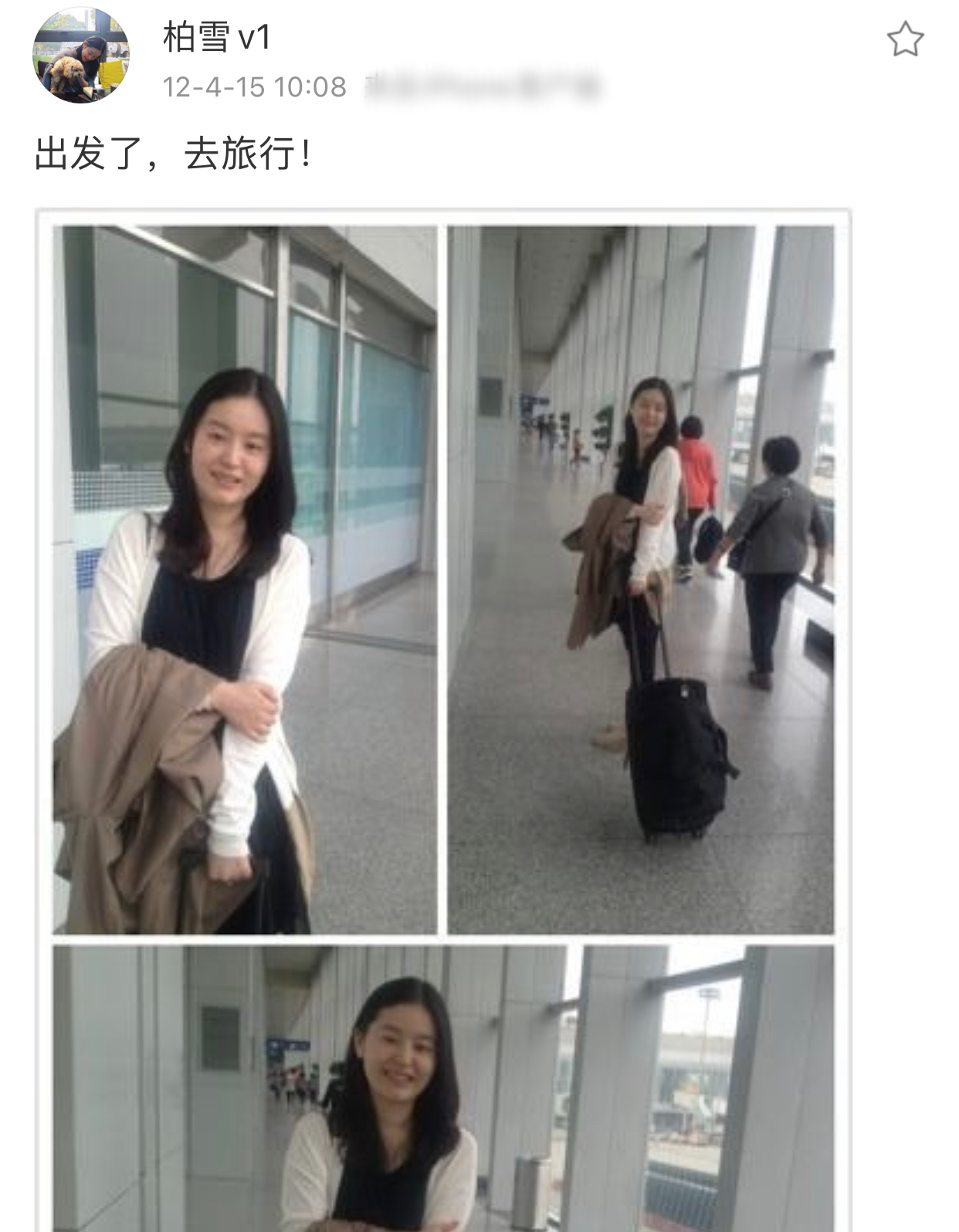 直到2012年4月,柏雪的社交账号被发现,她晒出一张旅行照,大家才松了一口气。