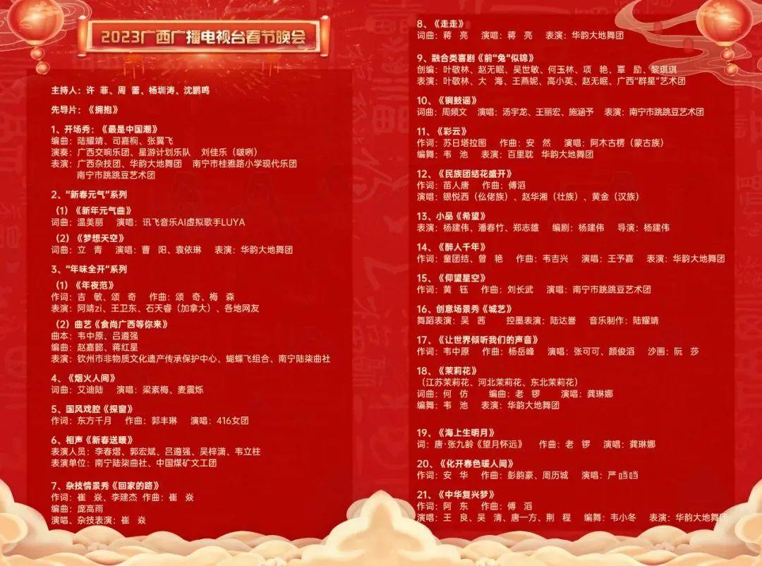 也许各式春晚大餐犹如“山珍海味”,你是不是有点“消化不良”,不要紧,这场独具清新温情特色“口感”的《2023广西广播电视台春晚》,会让你清新如常。